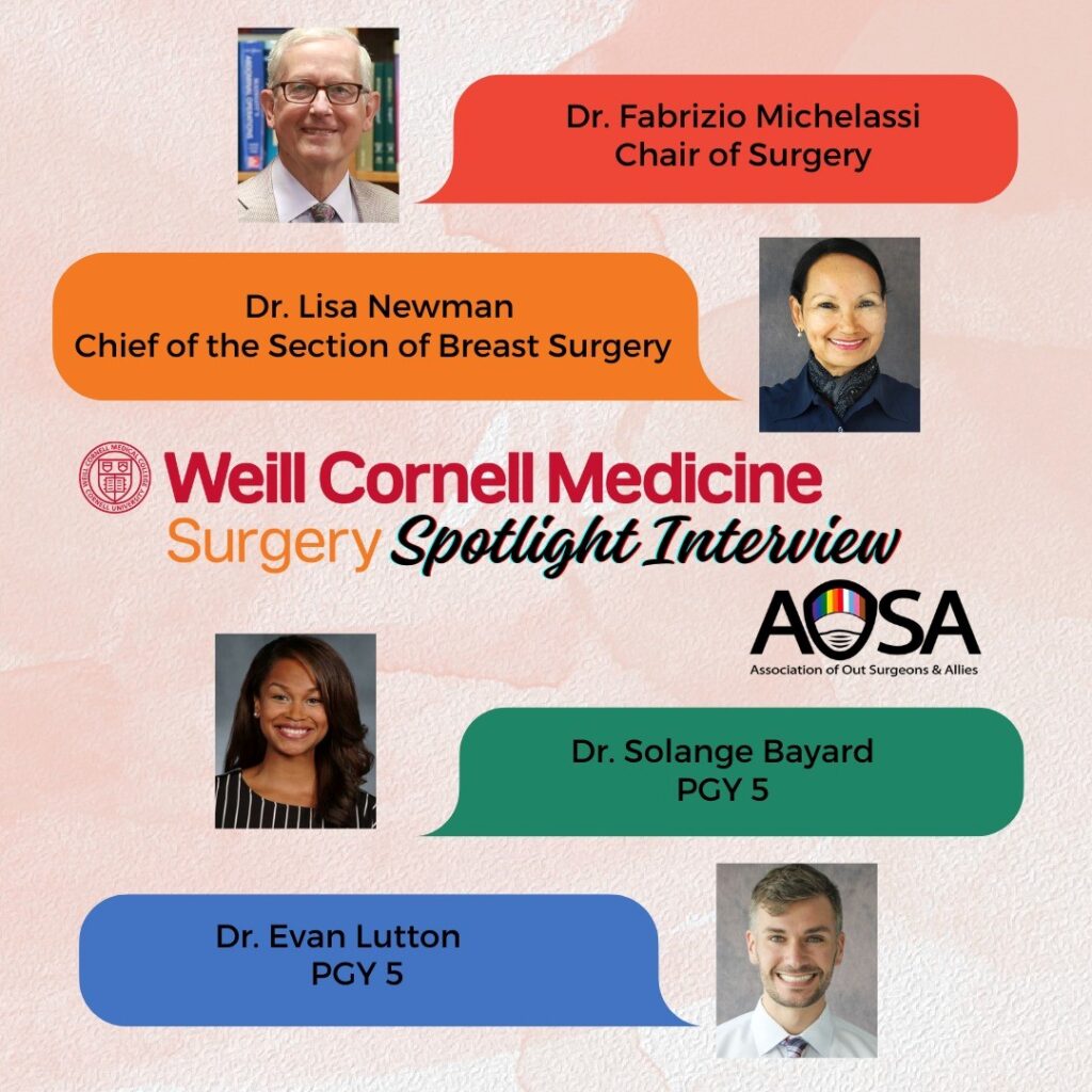 Nicole Goulet: Wonderful. Well thank you all for your time. Let’s just jump right in with some questions. So Weill Cornell was one of our first inaugural PRISM institutions, which is our highest level of institutional membership. Dr. Michelassi and Dr. Newman, I’ll put this question to you—how did you learn about the Association of Out Surgeons and Allies, and why was it important for you to become a PRISM member?